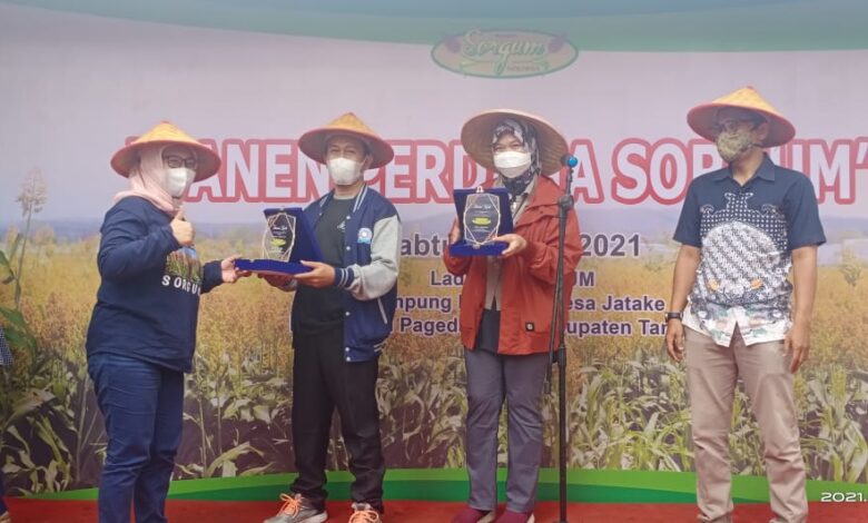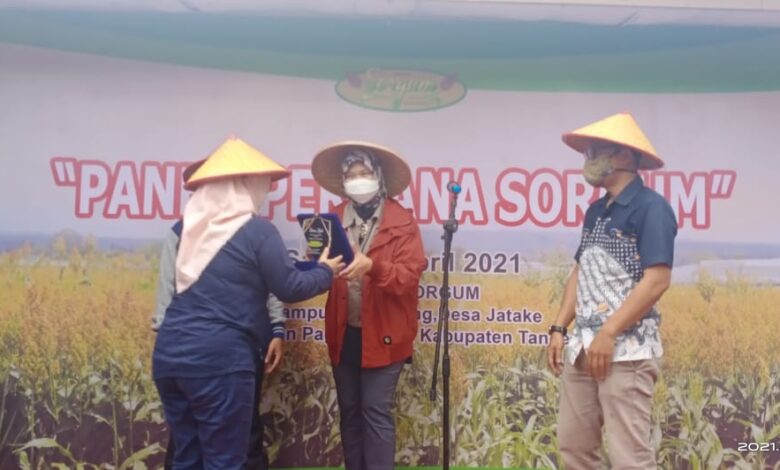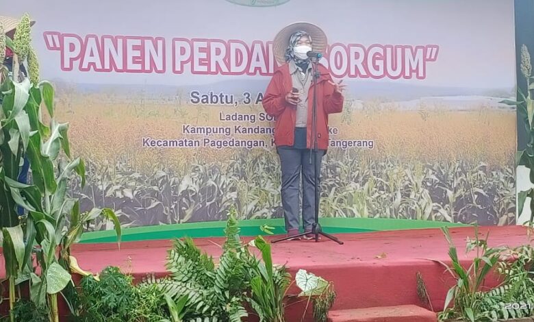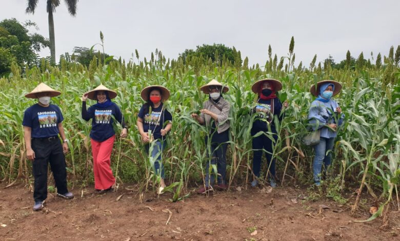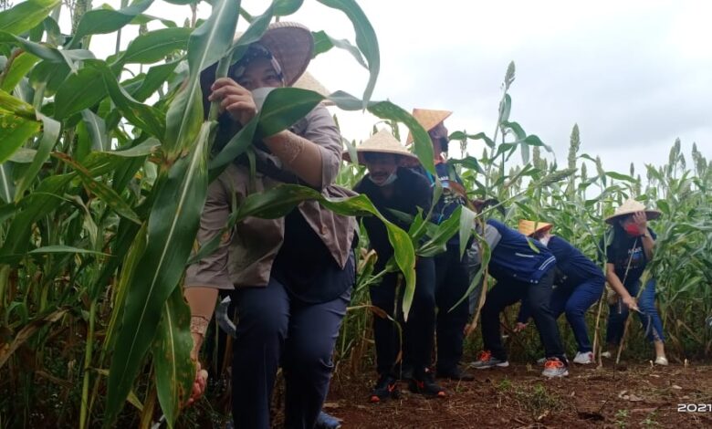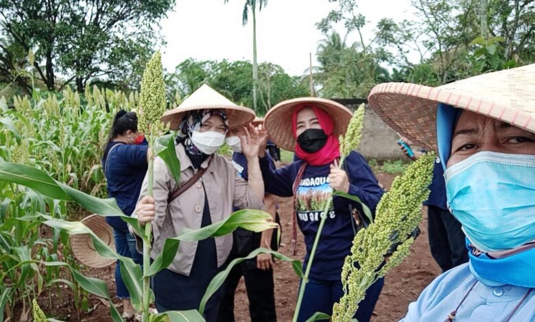 Panen Sorgum bersama kepala IWAPI Banten di Kp. Kandang Desa Jatake Kecamatan Pagedangan Kab Tangerang Provinsi Banten, Sabtu 3 April 2021