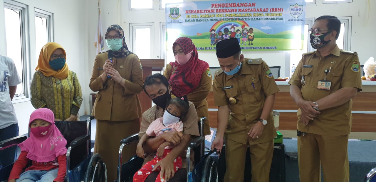 Pemberian bantuan kursi roda kepada anak berkebutuhan khusus, DP3AKKB Provinsi Banten.